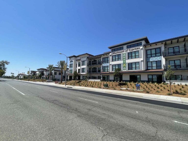 At the site of Westmont of Cypress, the exterior of the building is substantially complete and is in the “punch” phase of work! Site work is in full swing with